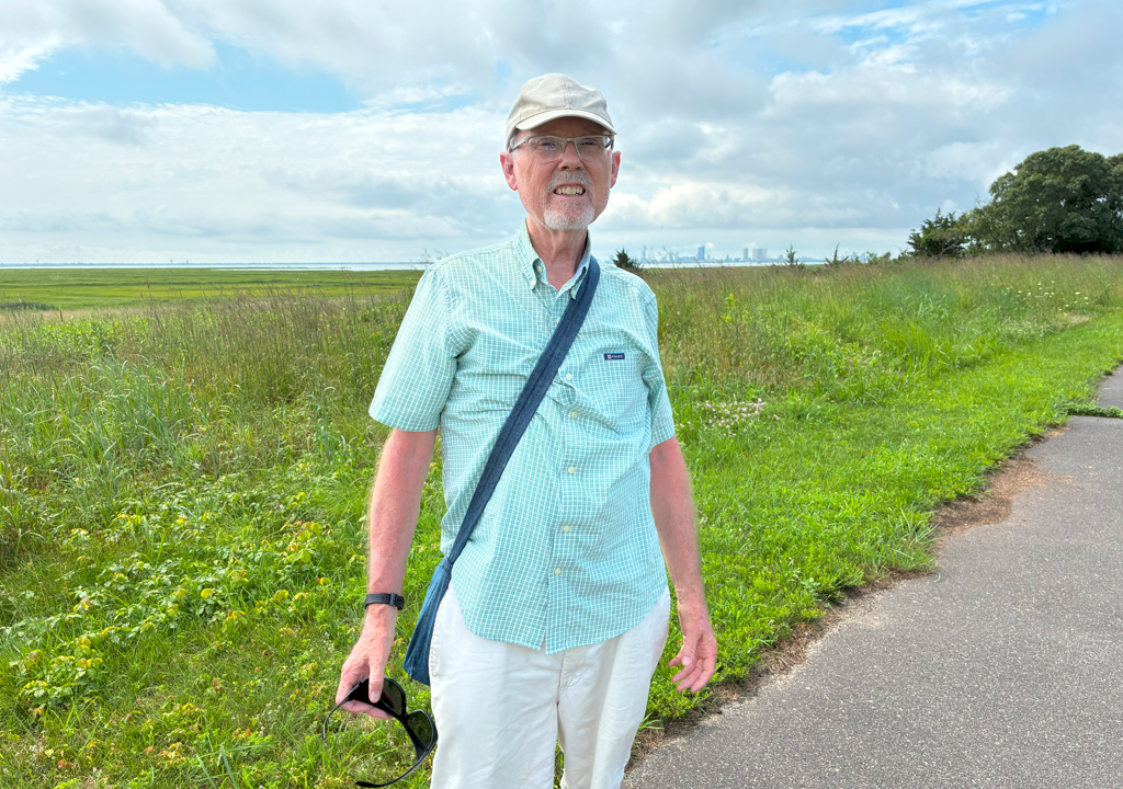 We decided to go walk—after doing our Sunday chores of laundry and our texting ministry “LinesUP”. We planned to go to the Conference House, a historic building and grounds that forms the southern border of Staten Island. It’s a nice drive from our home and it has been a beautiful day. The walk begins at the parking lot and goes straight southeast before getting into a beach area. As we walked along we noticed an older lady sitting on the railing that borders the tree-lined road/walkway. We greeted her as we passed and continued. As we entered the beach area, Alberta regretted not bringing her other pair of shoes that would enable us to walk on the beach. What to do? Go back and get them.