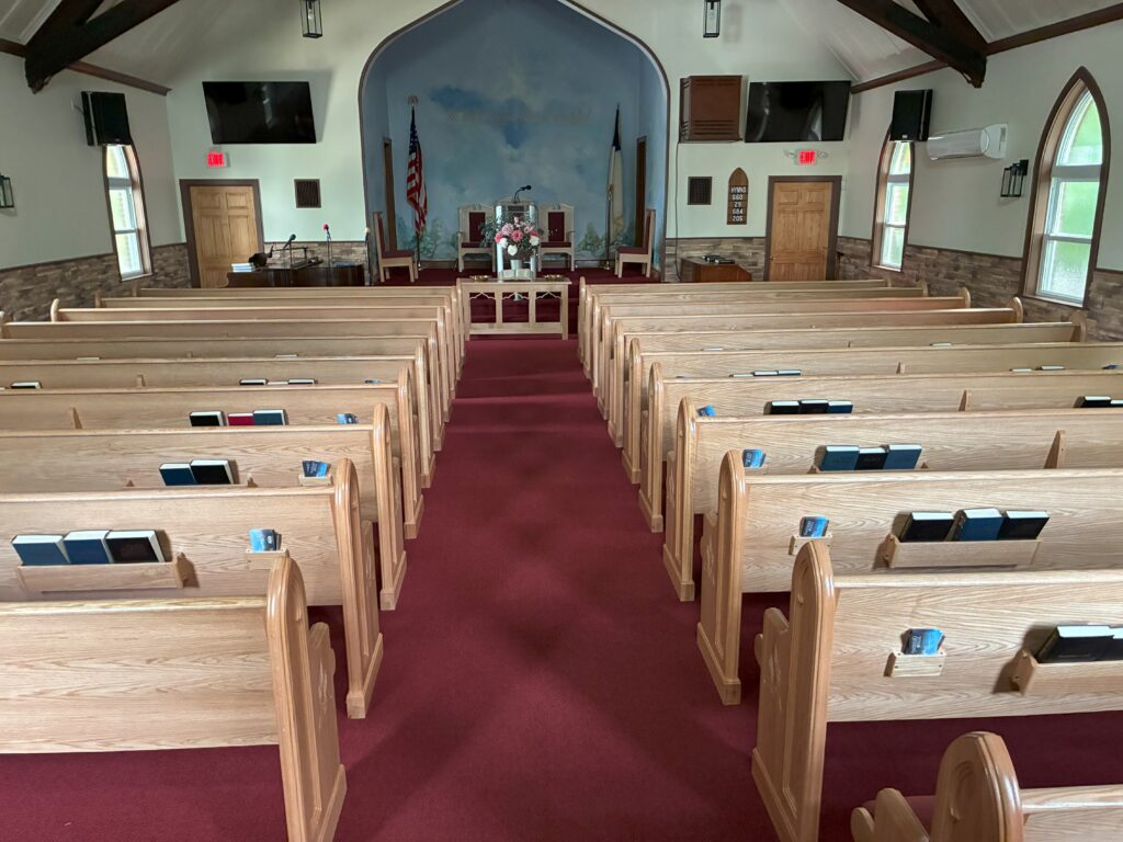 That following Wednesday the pews arrived and they are beautiful! It’s a once in a lifetime purchase and they will last until the Lord comes, we trust!