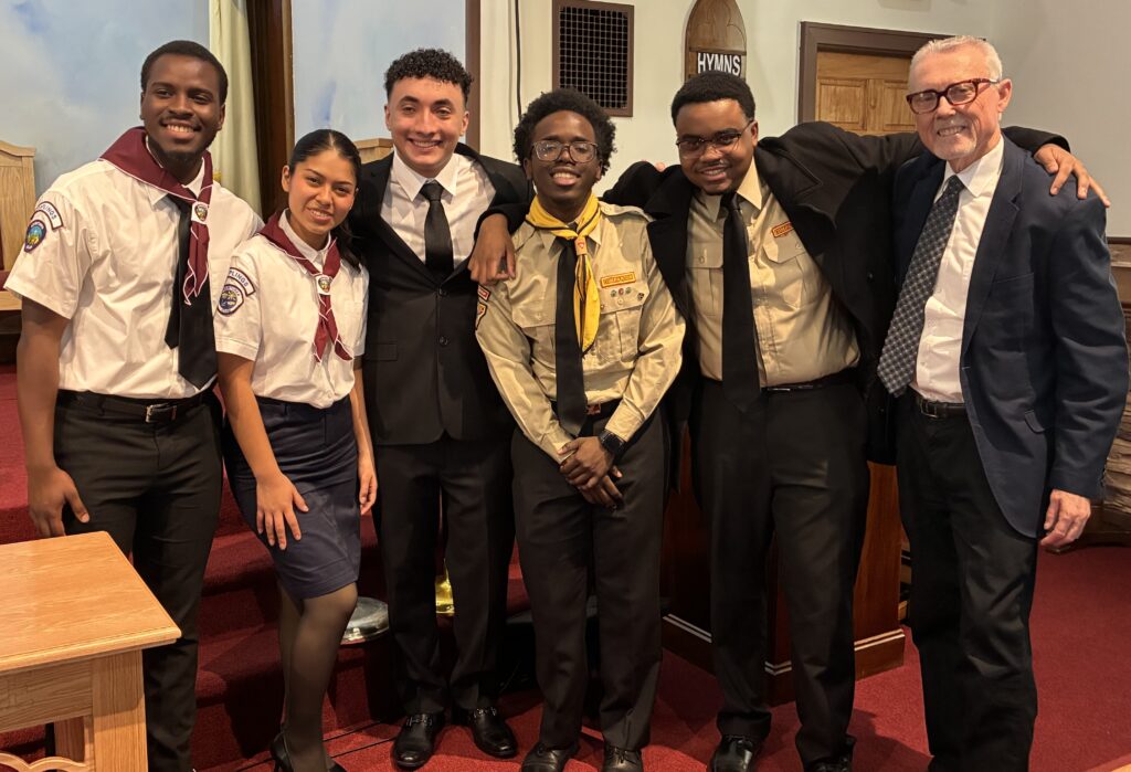 Tristan’s Preaching Tristan was baptized three years ago but after one time, stopped coming. One of the elders stayed in touch with him and shortly after we began pastoring Manor Road in February of this year, Tristan started coming again. We’ve become good friends. He shows promise for God’s work. We’ve done outreach together. We’ve studied together. And last Sabbath he preached his first sermon at the conclusion of a long Pathfinder, Adventurer Inductions and Youth service. He is one of our young adults (see the picture).